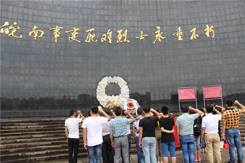 7月2日上午一早,黃山美澳公司總經(jīng)理胡少鵬、黨支部書(shū)記江成森帶領(lǐng)美澳公司全體黨員,赴宣城市涇縣新四軍軍部舊址紀念館,進(jìn)行參觀(guān)和學(xué)習教育,緬懷新四軍烈士的英勇事跡,并為在皖南事變中的死難將士們獻上了花圈。7月的氣候,時(shí)雨時(shí)晴,公司全體黨員冒著(zhù)綿綿細雨,在皖南事變死難烈士陵墓前認真開(kāi)展“新黨員入黨宣誓”學(xué)習教育活動(dòng),并帶領(lǐng)公司全體黨員學(xué)黨章、學(xué)習總書(shū)記系列講話(huà),教導大家如何做一名合格的共產(chǎn)黨員。