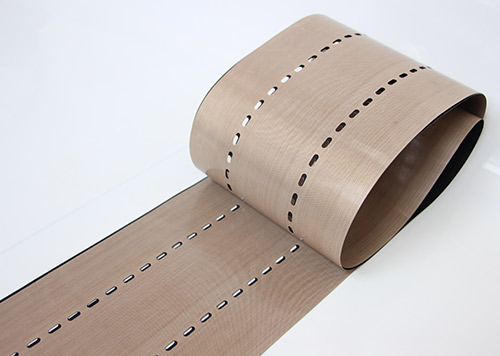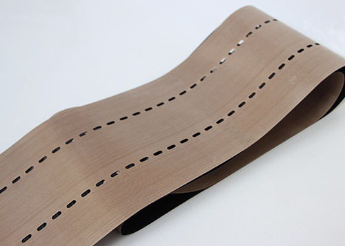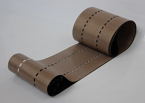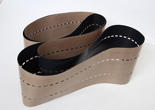 串焊機打孔特氟龍輸送帶采用高強度玻璃纖維紗或凱芙拉(芳綸)經(jīng)圓織設備編織筒狀織物,采用工藝技術(shù)涂覆特氟龍樹(shù)脂(PTFE)制成的。它克服以往輸送帶接口連接處易斷裂的現象。連接處周長(cháng)不等而造成走行穩定性差、跑偏現象。無(wú)縫皮帶運轉壽命比任何接法的特氟龍輸送帶壽命都要長(cháng)3倍以上。