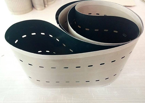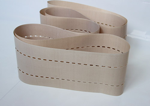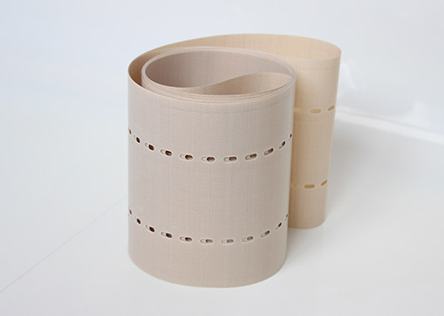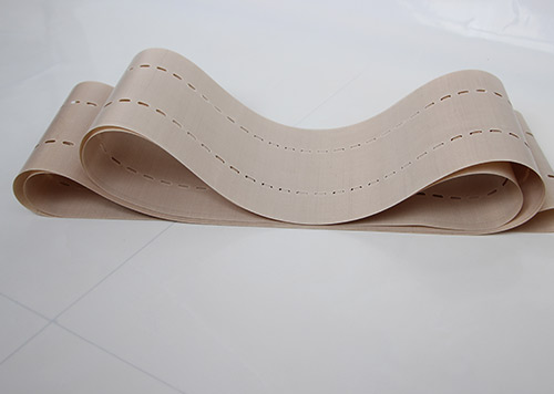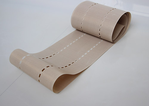 串焊機打孔特氟龍輸送帶采用高強度玻璃纖維紗或凱芙拉(芳綸)經(jīng)圓織設備編織筒狀織物,采用工藝技術(shù)涂覆特氟龍樹(shù)脂(PTFE)制成的。它克服以往輸送帶接口連接處易斷裂的現象。連接處周長(cháng)不等而造成走行穩定性差、跑偏現象。無(wú)縫皮帶運轉壽命比任何接法的特氟龍輸送帶壽命都要長(cháng)3倍以上。