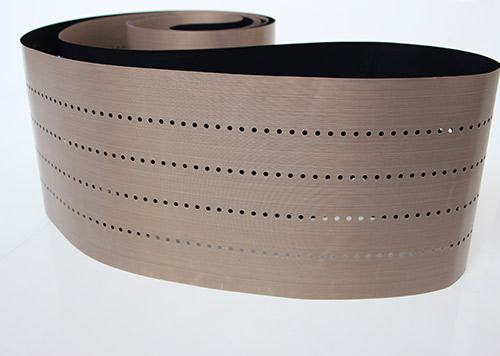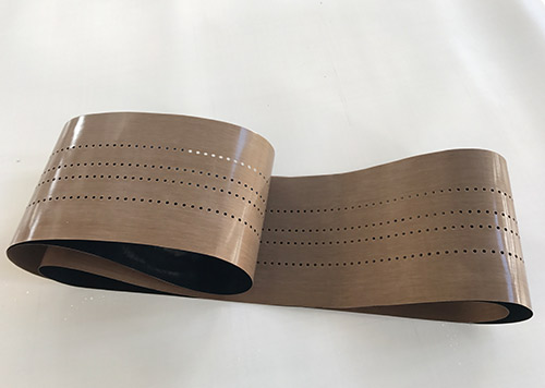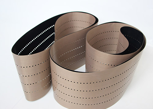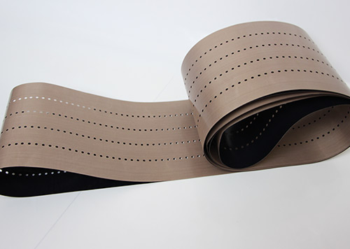 串焊機打孔特氟龍輸送帶采用高強度玻璃纖維紗或凱芙拉(芳綸)經(jīng)圓織設備編織筒狀織物,采用工藝技術(shù)涂覆特氟龍樹(shù)脂(PTFE)制成的。它克服以往輸送帶接口連接處易斷裂的現象。連接處周長(cháng)不等而造成走行穩定性差、跑偏現象。無(wú)縫皮帶運轉壽命比任何接法的特氟龍輸送帶壽命都要長(cháng)3倍以上。