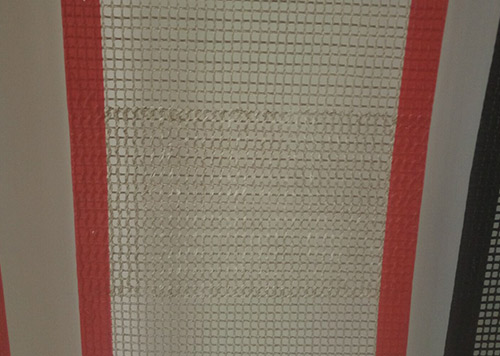 2.墻式接頭法:在網(wǎng)帶的兩頭分別用凱夫拉高溫布做圓柱狀的布條子,客戶(hù)也是直接用我們配好的鋼絲直接穿進(jìn)凱夫拉高溫布的小孔里面就行了。這種接頭方式的好處就是接頭處很耐磨,但是抗拉強度并不是很高。